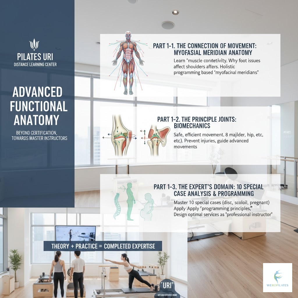 저희 필라테스 우리 원격평생교육원의 ''어드밴스드 기능 해부학'' 과정은, 자격증 취득을 넘어 ''마스터 지도자''로 성장하길 원하는 분들을 위한 심화 이론의 정수입니다.