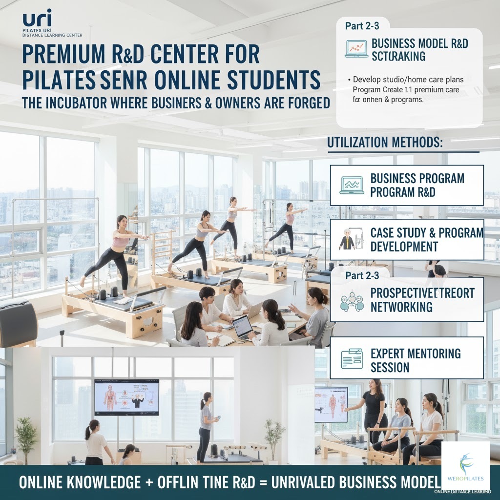 이 모든 부수적 혜택은 오직 ''필라테스 우리''의 정식 온라인 수강생에게만 독점적으로 제공되며, 여러분이 단순한 강사를 넘어 ''존경받는 전문가''이자 ''성공하는 시니어 비즈니스 오너''로 성장할 수 있도록 돕는 가장 강력한 지원 시스템입니다.